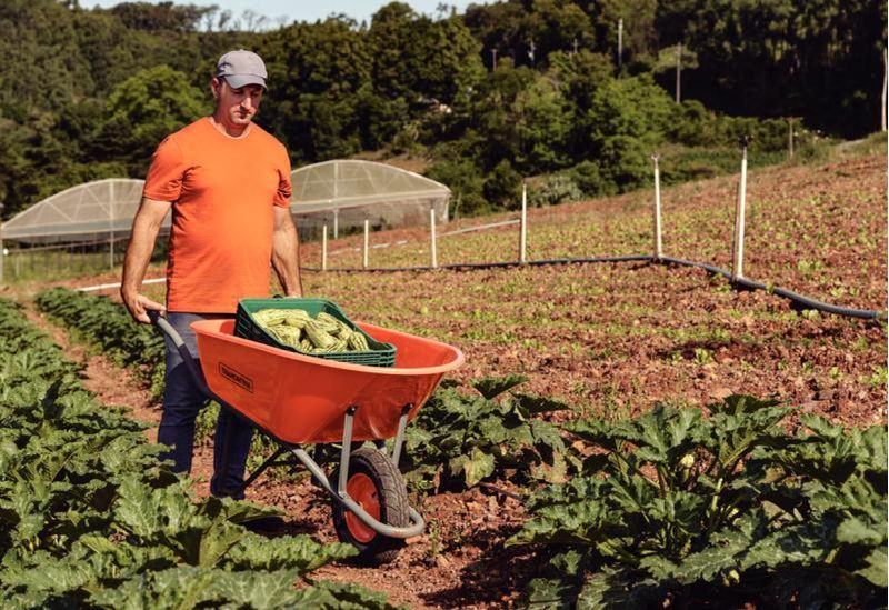 Carrinho de Mão Tramontina com Caçamba Extrafunda Plástica Laranja 110 Litros Braço Metálico REF: 7891117107118
