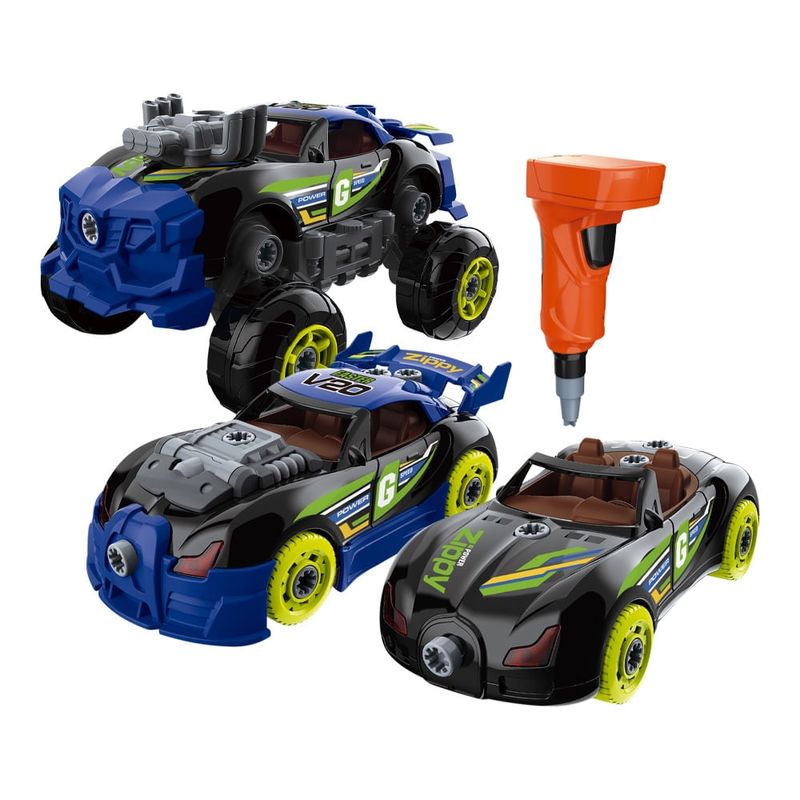 Brinquedos e JogosColecionáveis e MiniaturasCarro de Brinquedo Turbo Tools Mustang/Bugatti 3 em 1 com Ferramentas Multikids - BR2164 BR2164