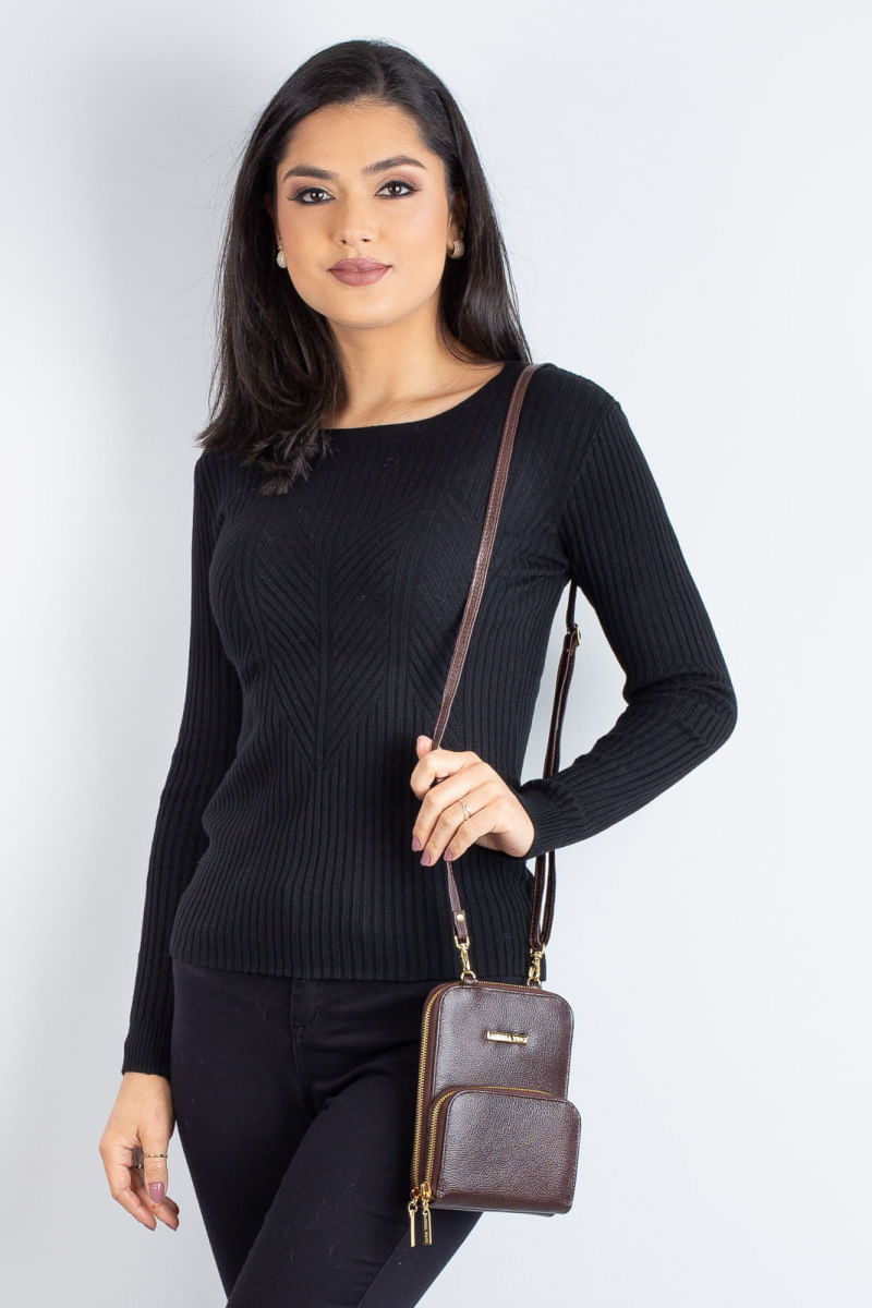 Carteira com alça de couro liso Ingrid 18,5x13,5cm REF: 7899948648619