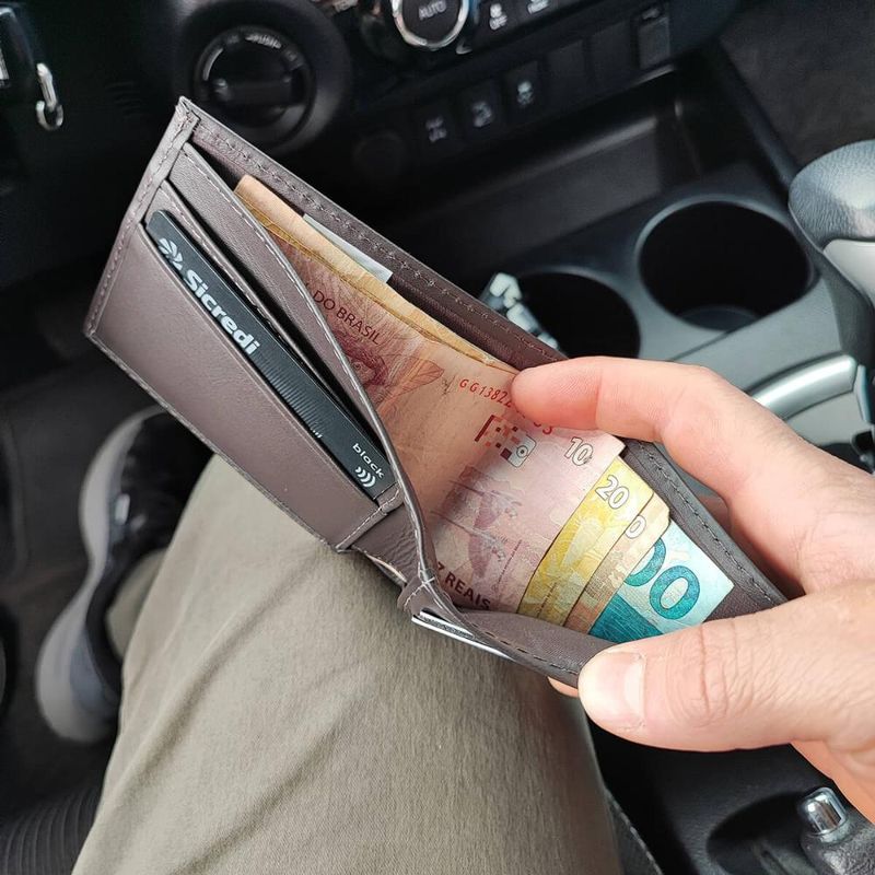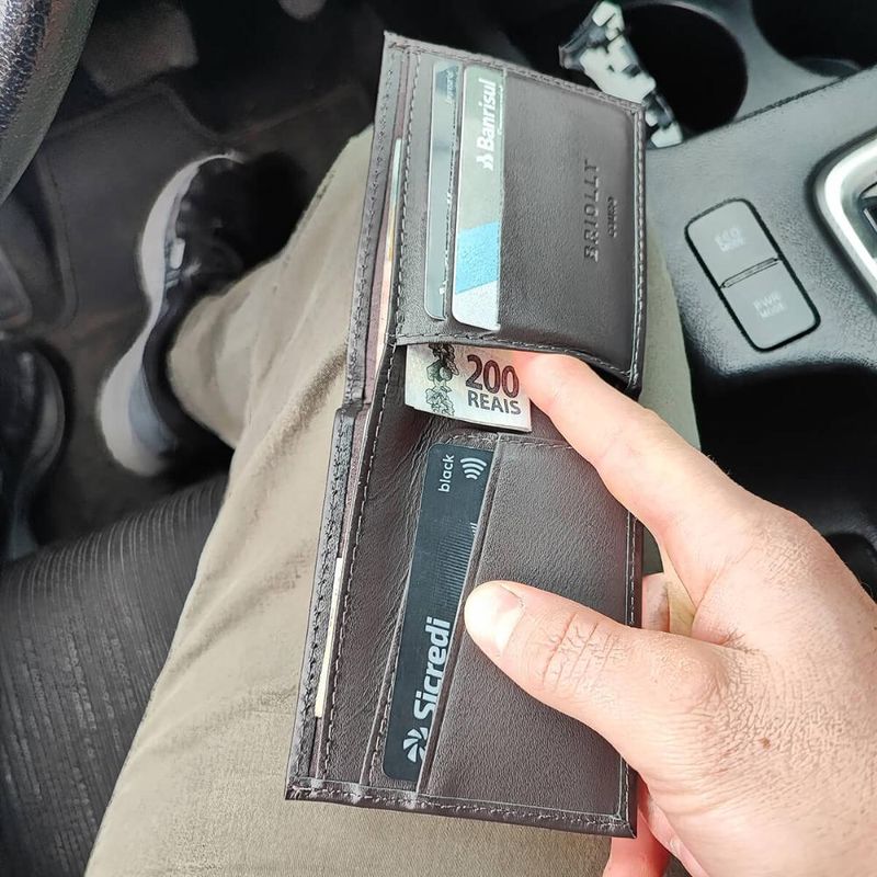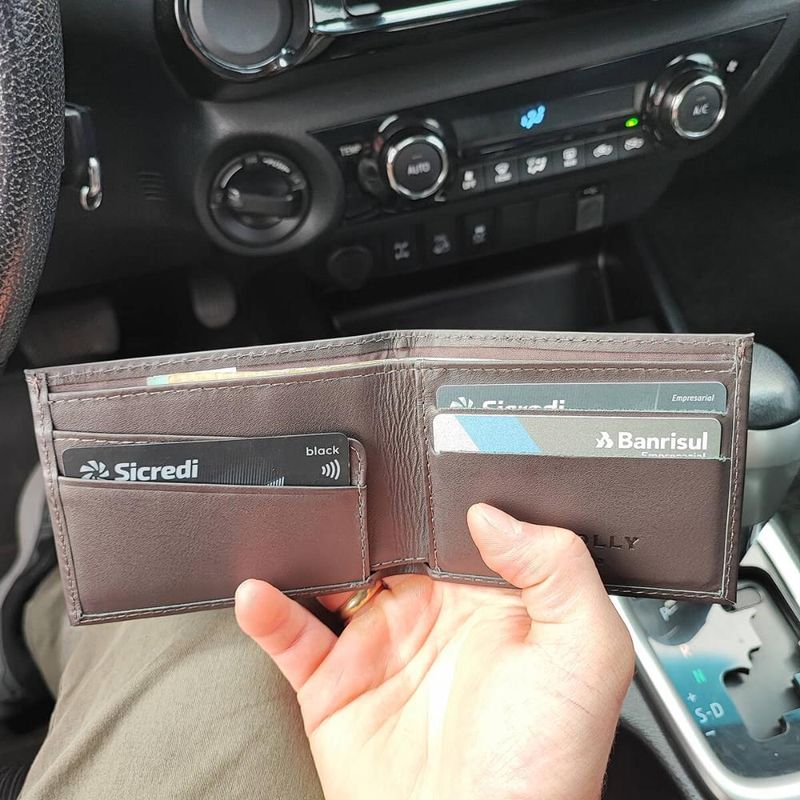 ModaMasculinoAcessóriosCarteira Compacta Masculina Slim Couro Marrom Porta Cartão Veneza Briolly