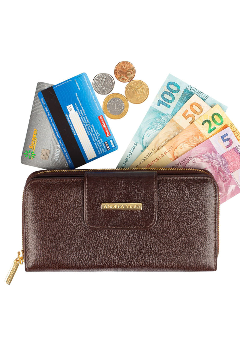 ModaFemininoAcessóriosCarteira feminina de couro liso Cindy 9,5x19cm