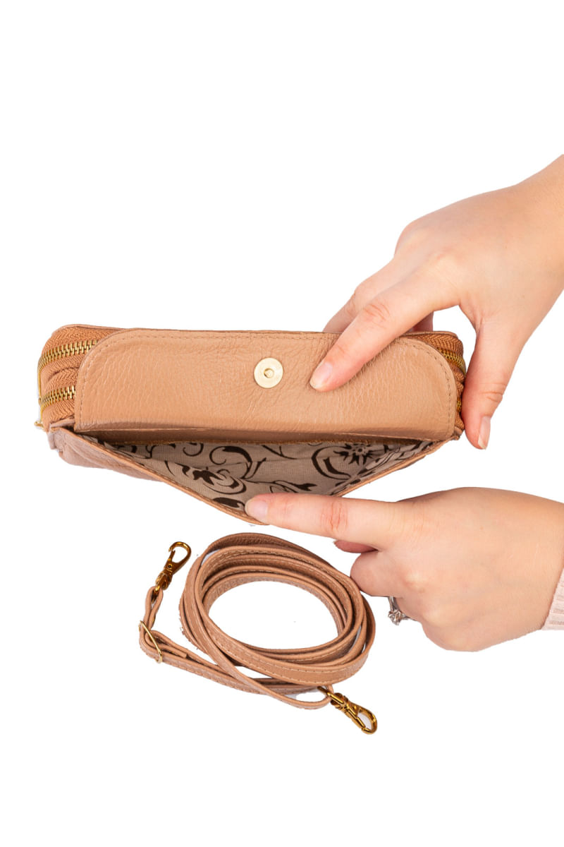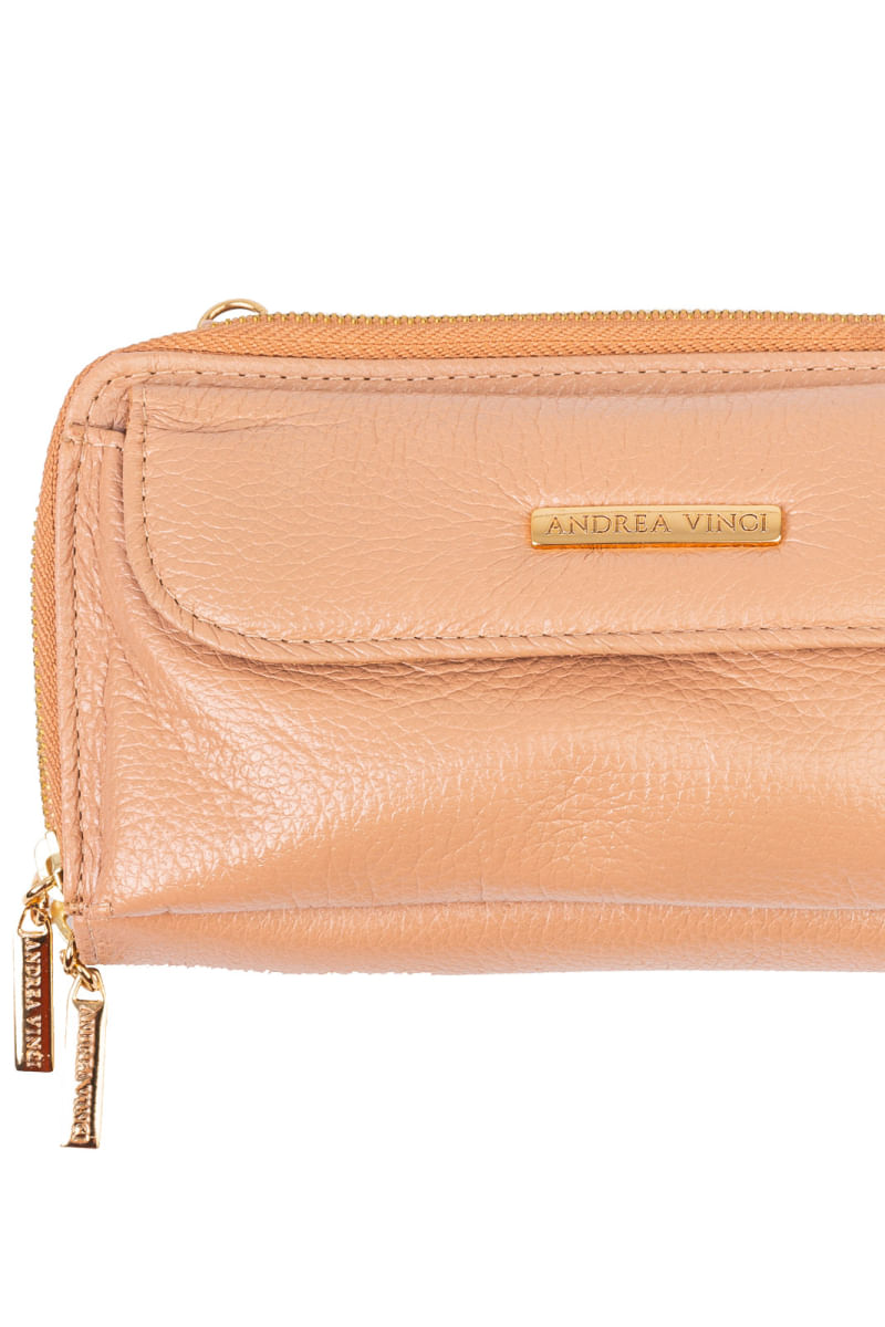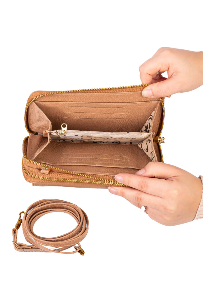 Carteira feminina de couro liso com alça Tania 10,5x19cm REF: 7908660103938