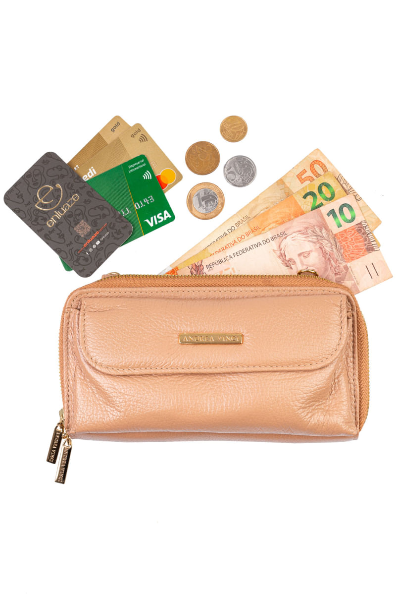 ModaFemininoAcessóriosCarteira feminina de couro liso com alça Tania 10,5x19cm