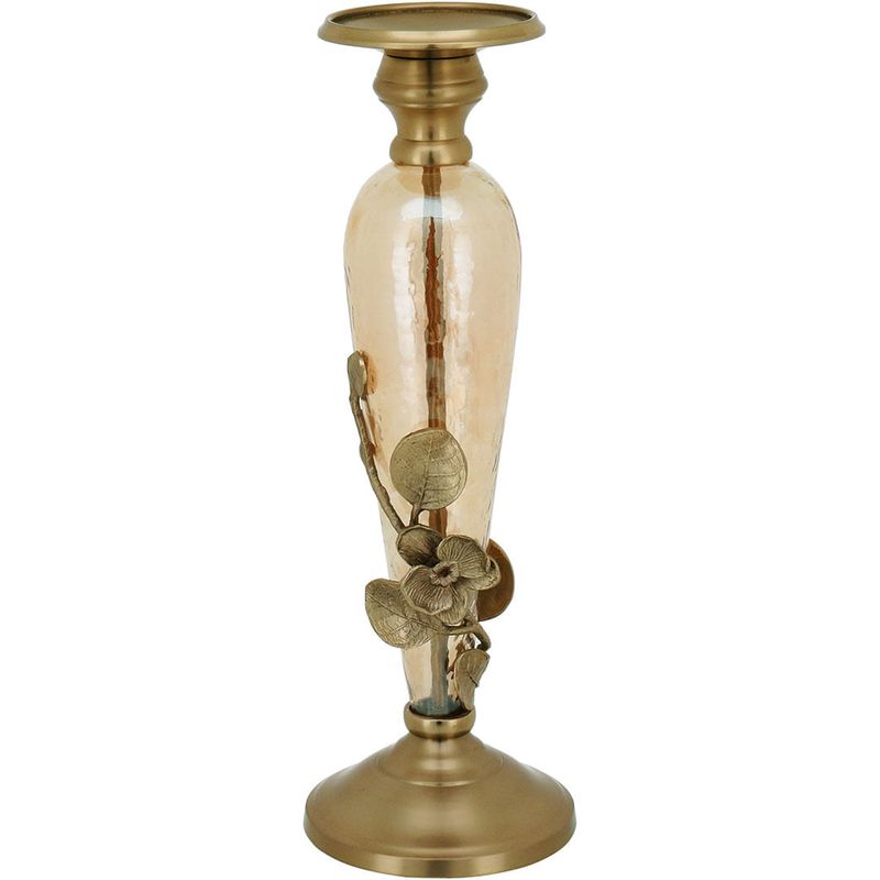 Casa e DecoraçãoDecoraçãoObjetos DecorativosCastiçal Lustrado Metal Dourado Home&Co Sanctur 36X12X12Cm