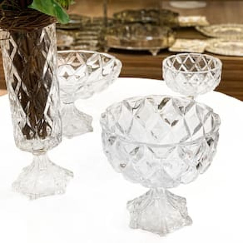 Centro de Mesa Lyor em Cristal com Pé Deli Diamond 18x18cm REF: 759398_Sicredi