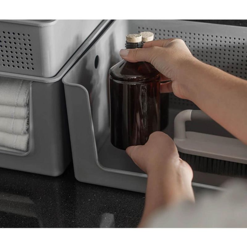 Cesto Caixa Organizadora Flow 16L Abertura Frontal Bege Lavanderia Banheiro REF: 7908466051471