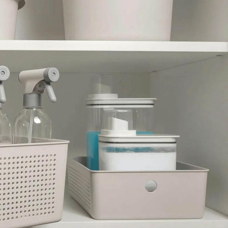 Cesto Organizador Flow 27x22x9cm Bege Ou Closet 5,4L Banheiro Lavanderia Caixa Organizadora REF: 7908466051358