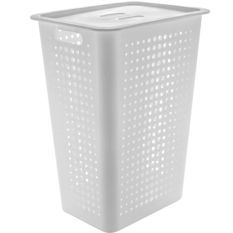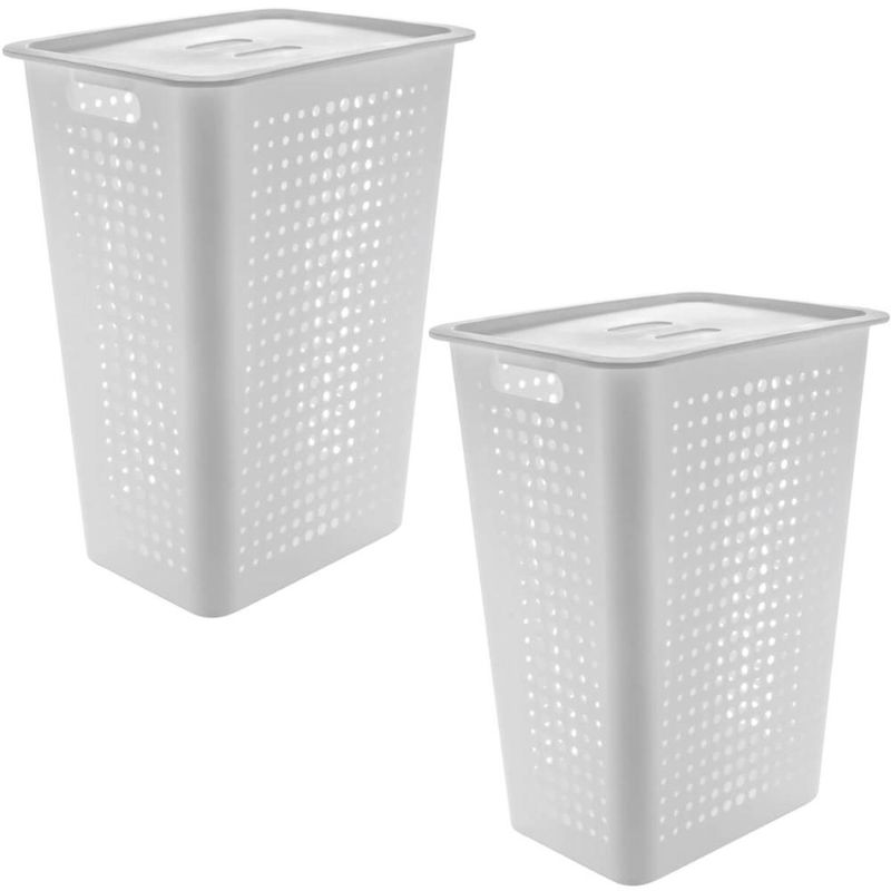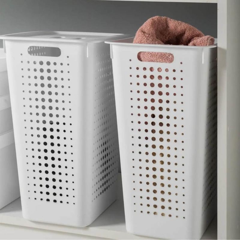 Casa e DecoraçãoDecoraçãoOrganizadoresCestos Organizadores com Tampa OU 47L para Roupas Lavanderia 2un Brancos Área de Serviço