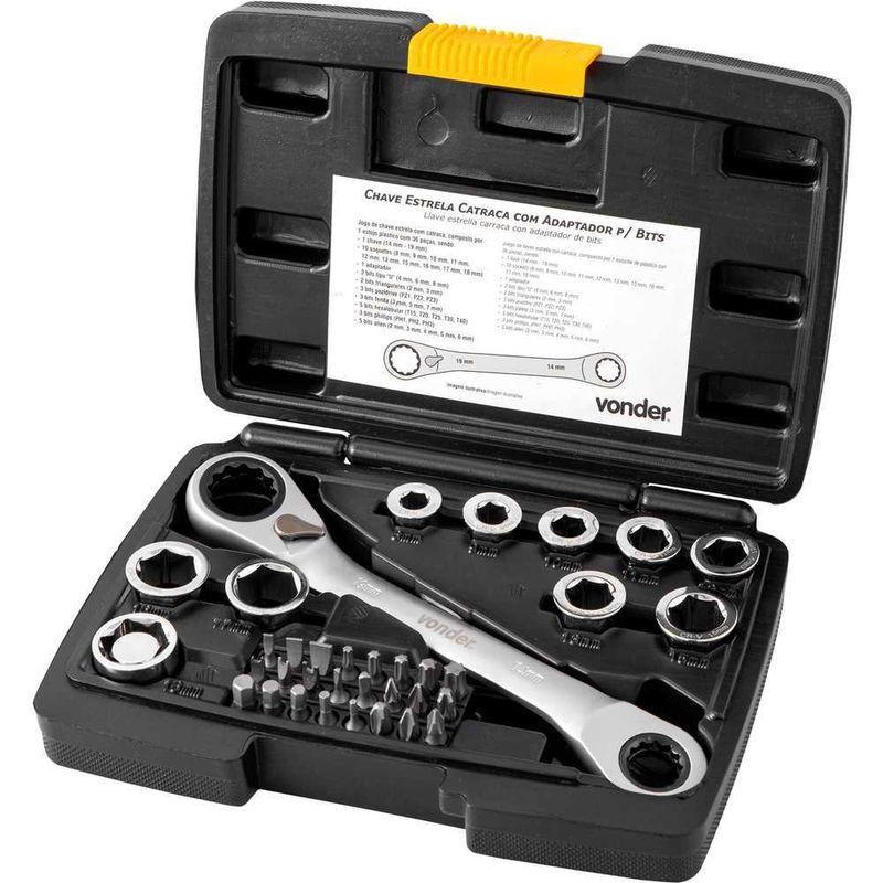 Ferramentas e ConstruçãoFerramentasFerramentas manuaisCh Estrela/bits Jg 8a19mm Catraca 37pc Vonder