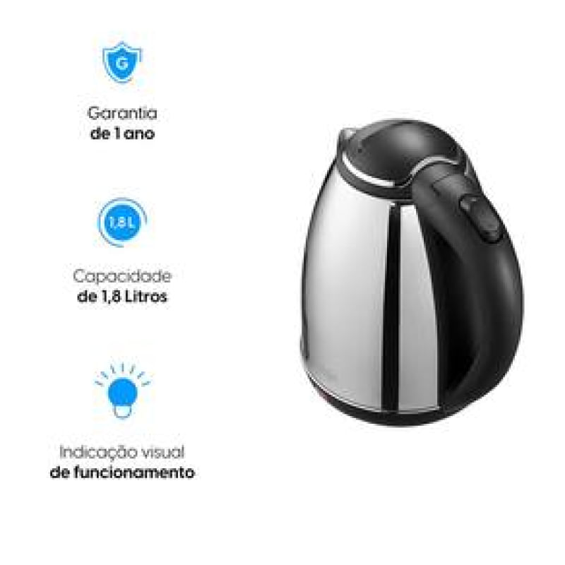 Chaleira Elétrica Elgin Cha10 1,8L Sem Fio com Desligamento Automático - Inox REF: 463944_Sicredi