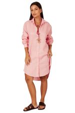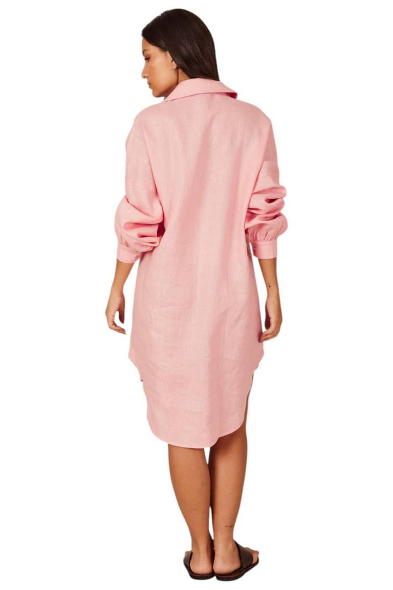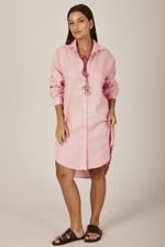 ModaFemininoBlusas e CamisetasChemise Clássica De Linho Alongada Rosa Claro Yacamim P5