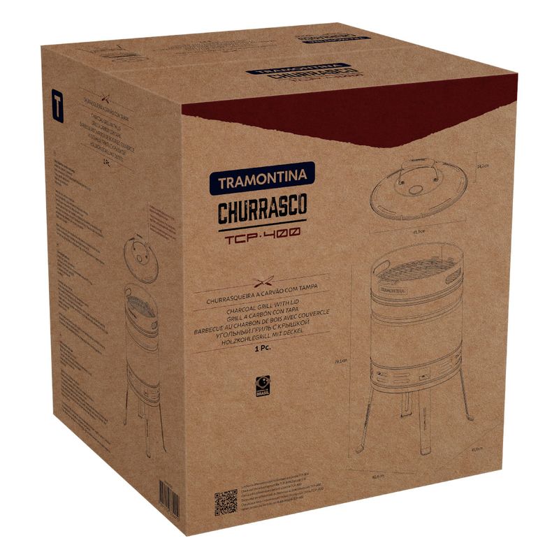 Churrasqueira à Carvão Tramontina TCP 400 em Aço Inox com Bandeja para Carvão em Aço Esmaltado REF: 7891112334410