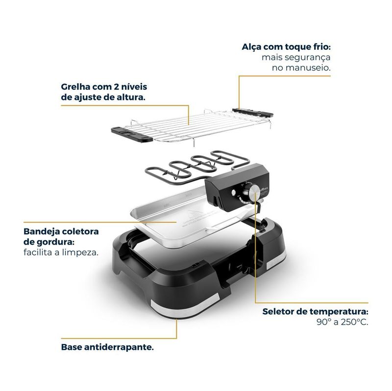 Churrasqueira Elétrica Britânia 1500W Menos Fumaça BCQ10A REF: 7891356116827
