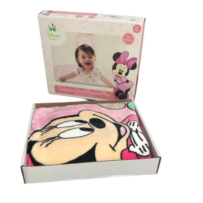 Cobertor para Bebê Raschel Plus 90x110cm Disney Minnie Surpresa REF: 734627_Sicredi