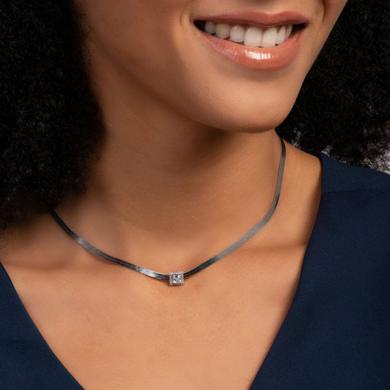 Colar de Prata 925 com Banho em Ródio Branco e Zircônias REF: 275197_Sicredi
