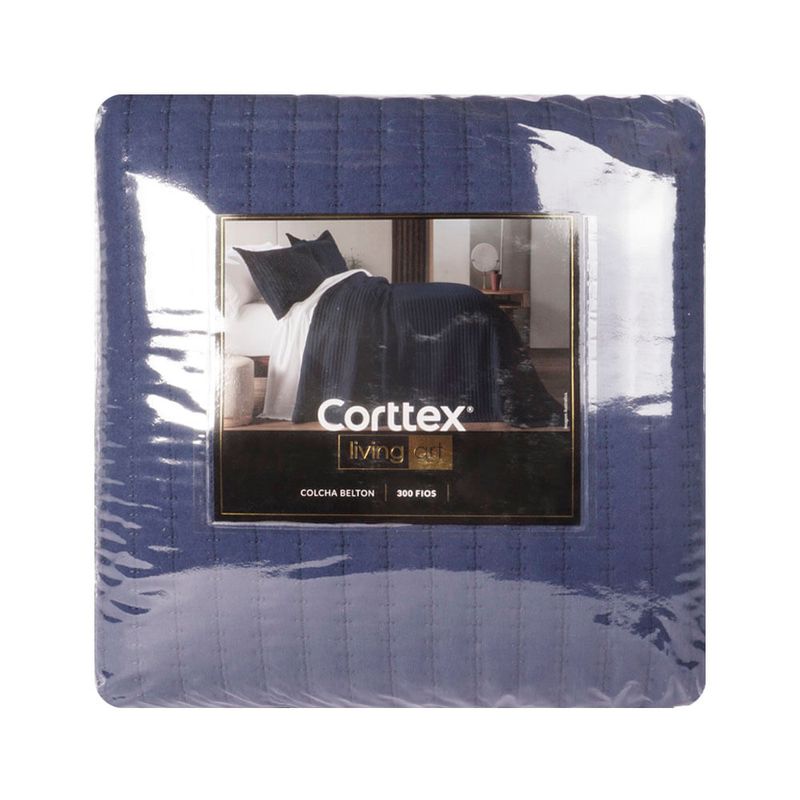 Colcha Casal 300 Fios Corttex Belton 3 Peças Marinho REF: 730066_Sicredi
