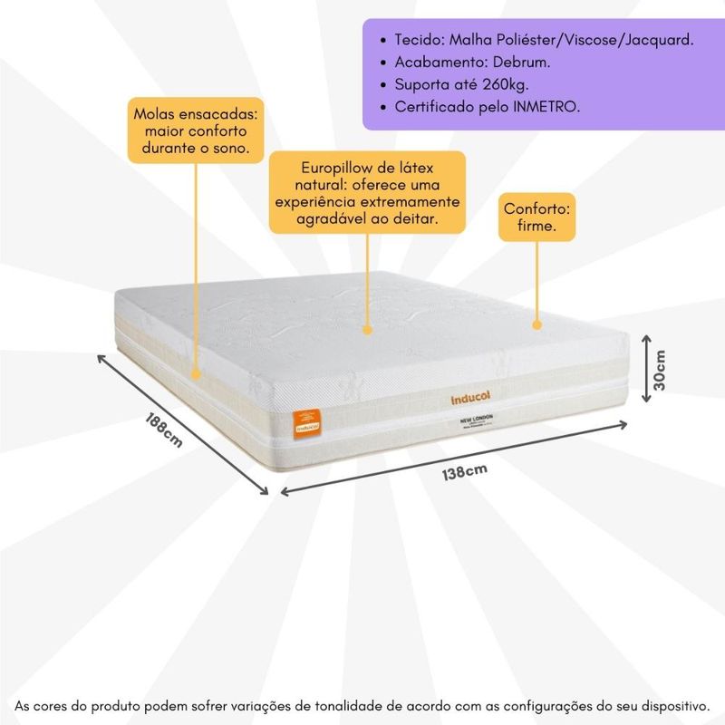 Colchão Casal New London 138x188cm Molas Ensacadas Inducol CR444C REF: 768898_Sicredi