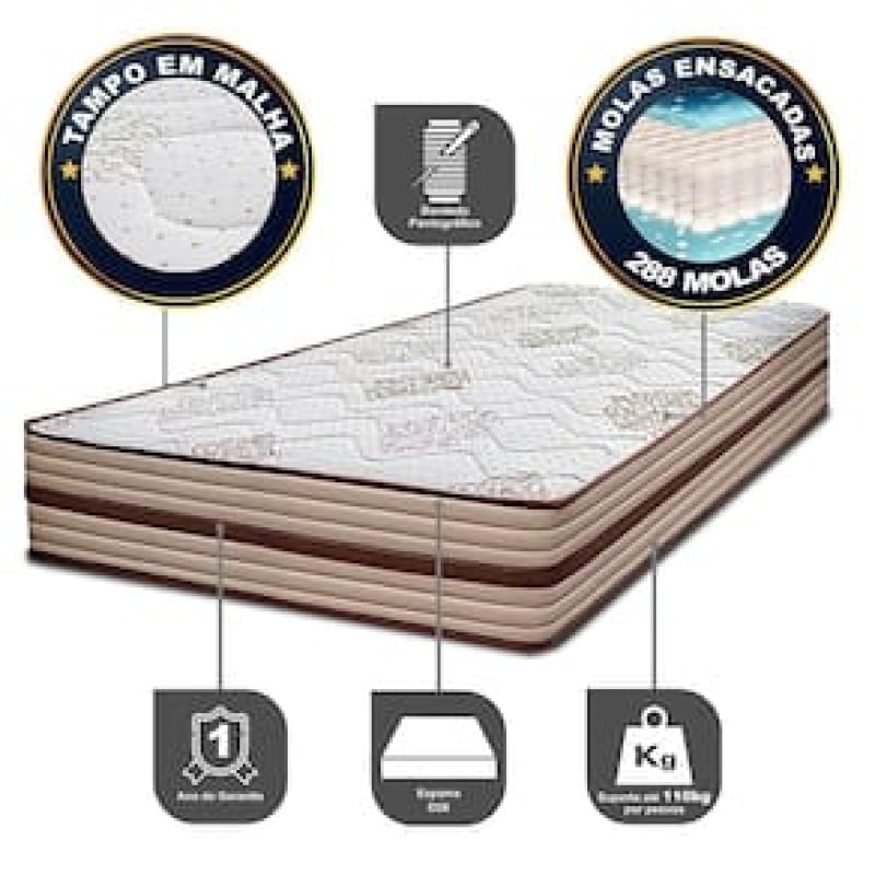 Casa e DecoraçãoMóveisColchãoColchão de Solteiro Cama InBox Livity com Molas Ensacadas e Espuma D26 24x88x188cm Bege