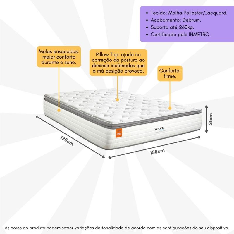 Colchão Queen Wave 158x198cm Molas Ensacadas Softgel Inducol CR448C REF: 638238_Sicredi