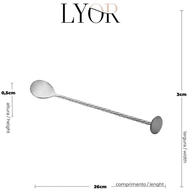 Colher Bailarina Aço Inox 26cm Tress Lyor Prateada para mexer Bebidas Coquetel Drinks Suco REF: 7899768022835