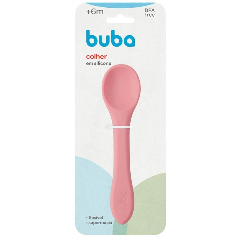 Colher de Silicone para Bebê Buba Rosa +6m Introducao Alimentar Flexível REF: 7908103756431