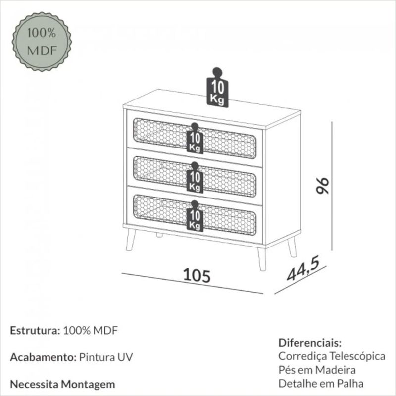 Casa e DecoraçãoMóveisCômodaCômoda 3 Gavetas em MDF Palha Freijó 105x96x45 cm Dalla Costa