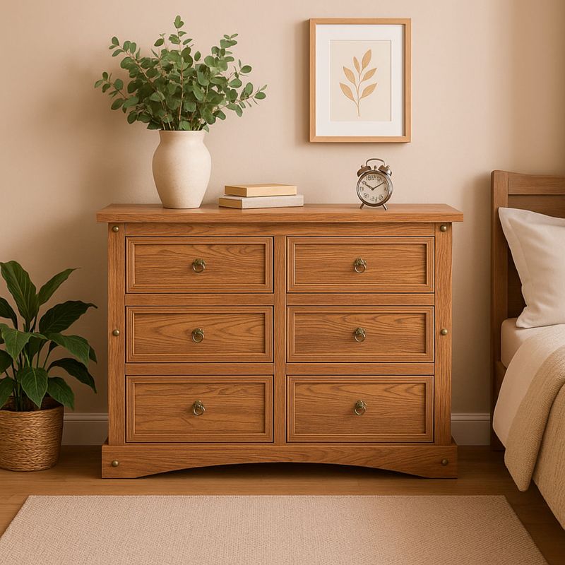 Casa e DecoraçãoMóveisCômodaCômoda 6 Gavetas em Madeira Carvalho Rústico 131x48x104 cm Elliottiis Marin Brasil