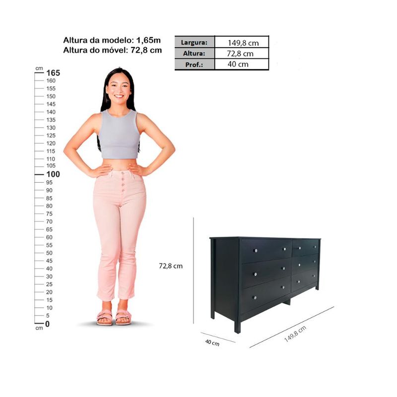 Cômoda Ditália 6 Gavetas DM-221 Preto REF: 7893948495808