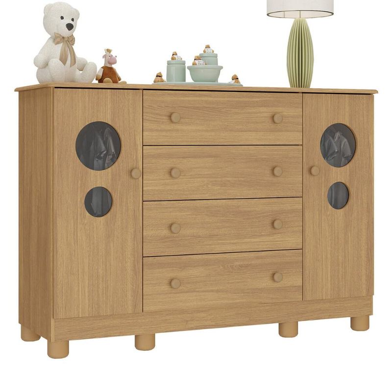 Casa e DecoraçãoMóveisCômodaCômoda Infantil 125cm 2 Portas com Vidro e 4 Gavetas Bombom Multimóveis MP4465