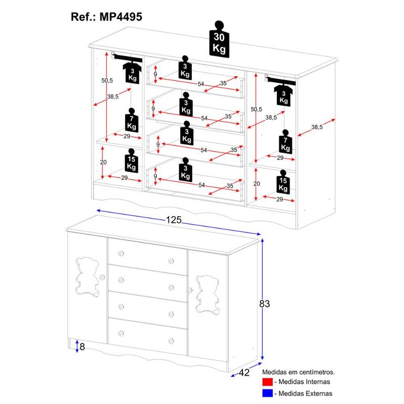Cômoda Infantil 125cm 2 Portas com Vidro e 4 Gavetas Doçura Multimóveis MP4495 REF: 7899390835742