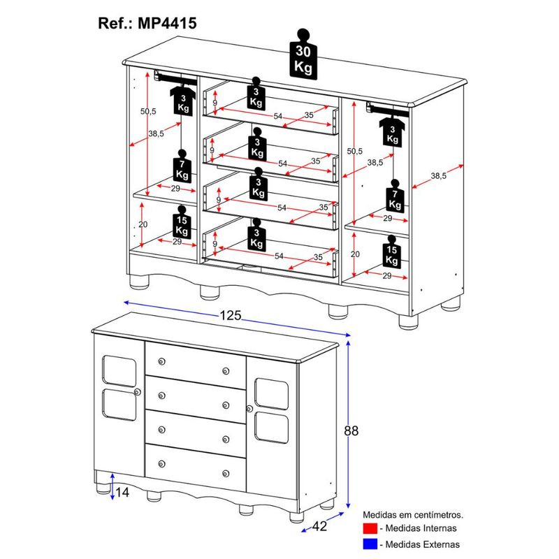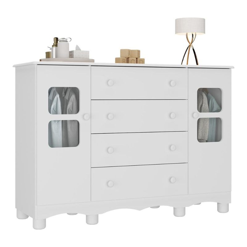 Cômoda Infantil 125cm 2 Portas com Vidro e 4 Gavetas Luna Multimóveis MP4415 REF: 7899390828942