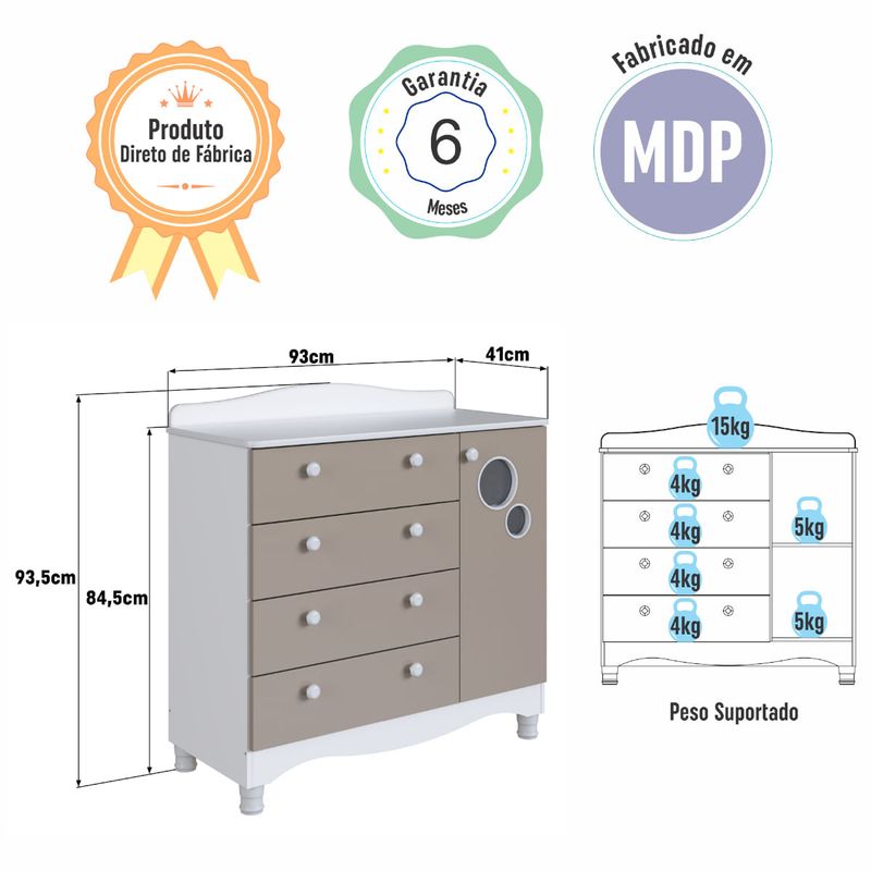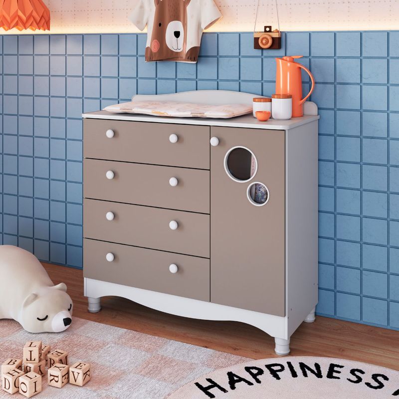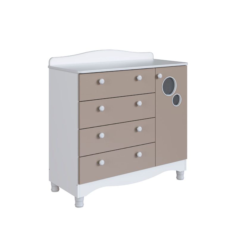 Cômoda Infantil 4 Gavetas 1 Porta Encanto Branco e Cinnamon Completa Móveis REF: 7899671471423