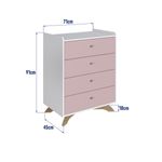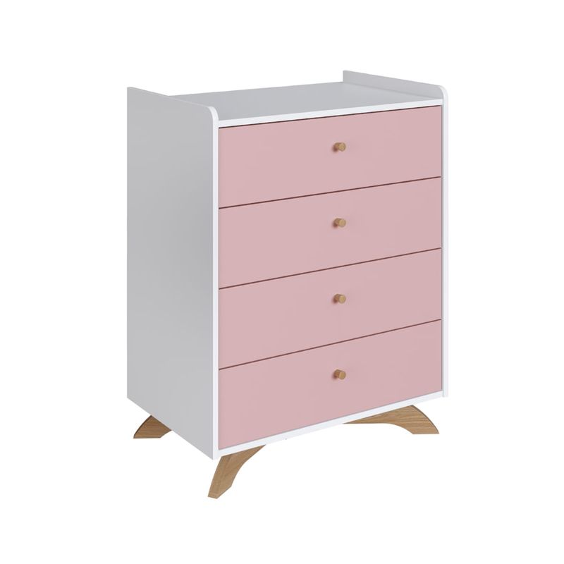 Cômoda Infantil 4 Gavetas Affetto em MDP Branco Rosa Completa Móveis REF: 7899671469604