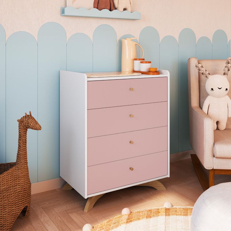 Casa e DecoraçãoMóveisCômodaCômoda Infantil 4 Gavetas Affetto em MDP Branco Rosa Completa Móveis