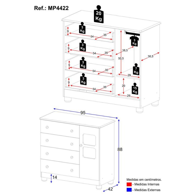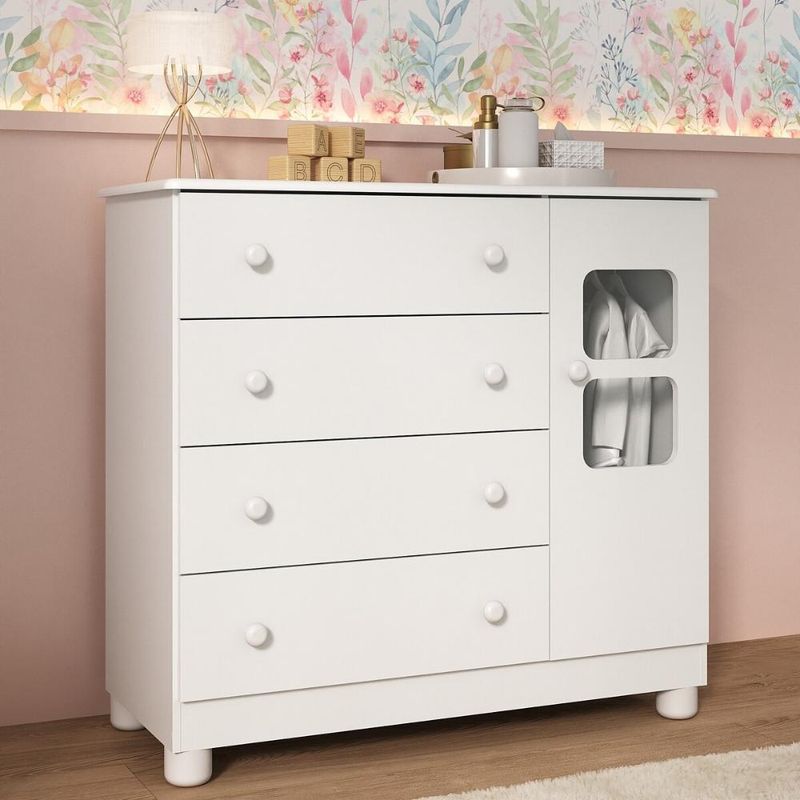 Cômoda Infantil 95cm 1 Porta com Vidro e 4 Gavetas Sol Multimóveis MP4422 REF: 7899390834165
