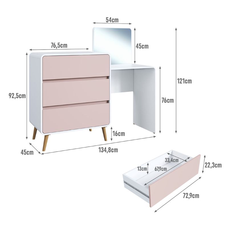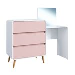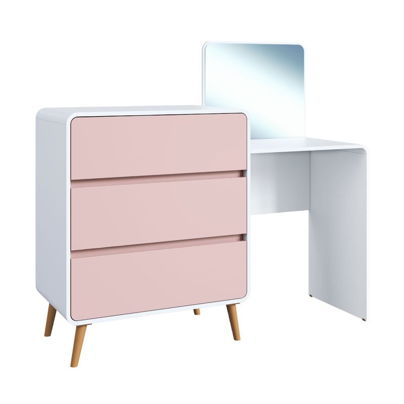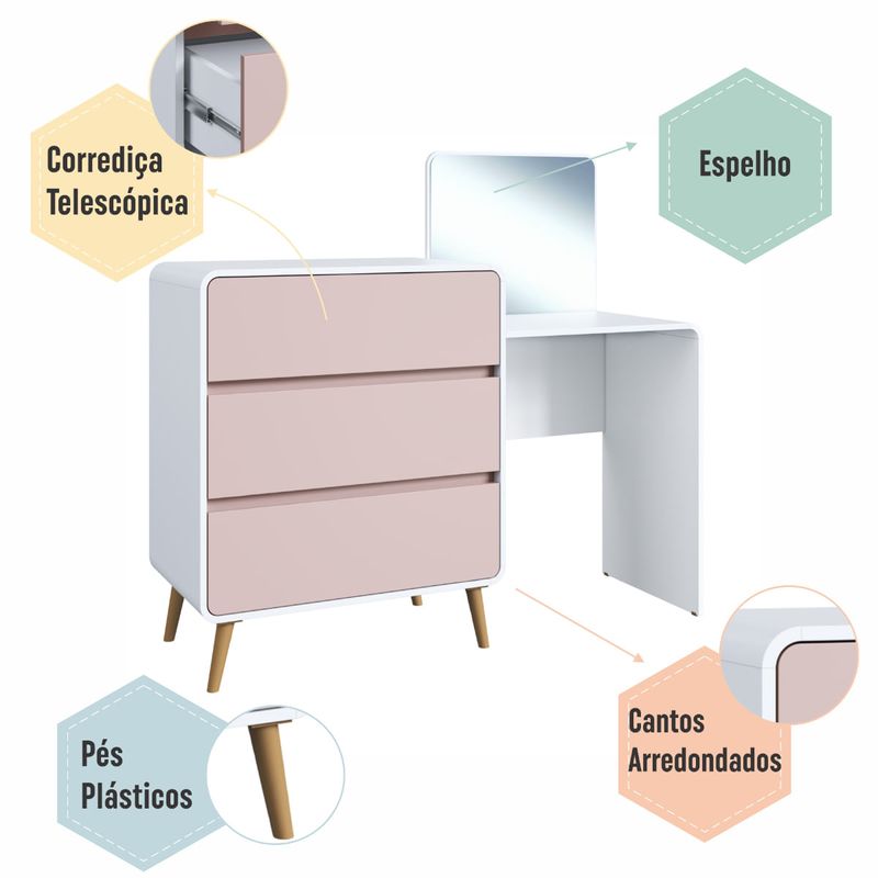 Cômoda Penteadeira 3 Gavetas Curve Branco com Rosa Completa Móveis REF: 7899671472093