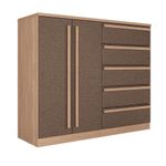 Cômoda Santos Andirá Chicago 5 Gavetas e 2 Portas - Wood/Couro Terracota REF: 7908687510634