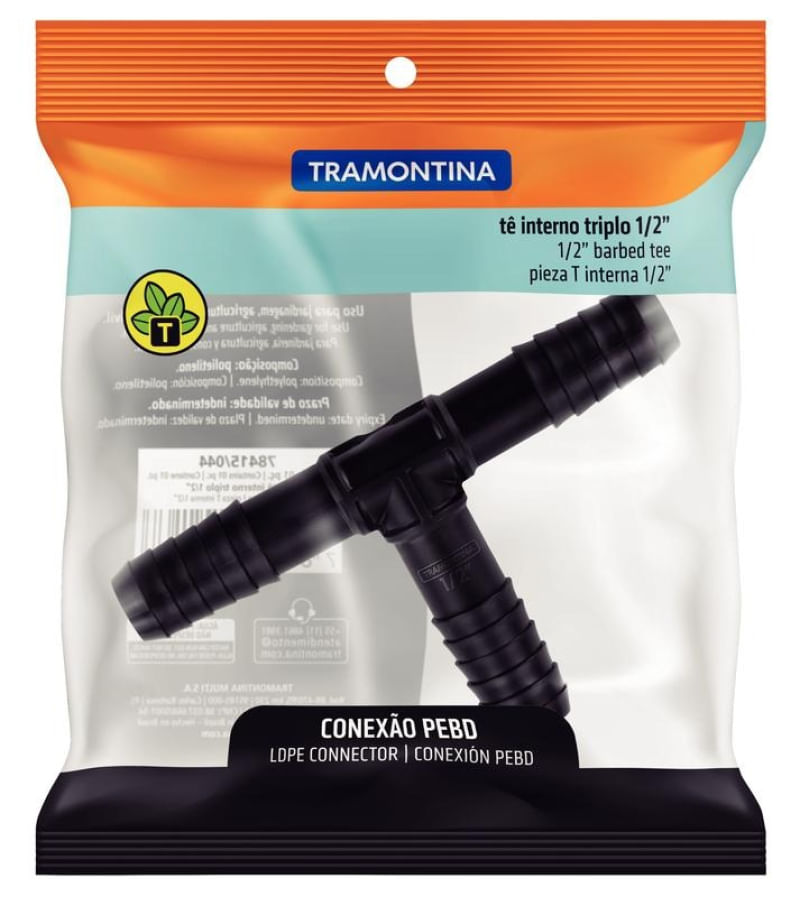Conexão Tê Interno Triplo Tramontina 1/2" Para Mangueiras de PEBD REF: 7891117102168