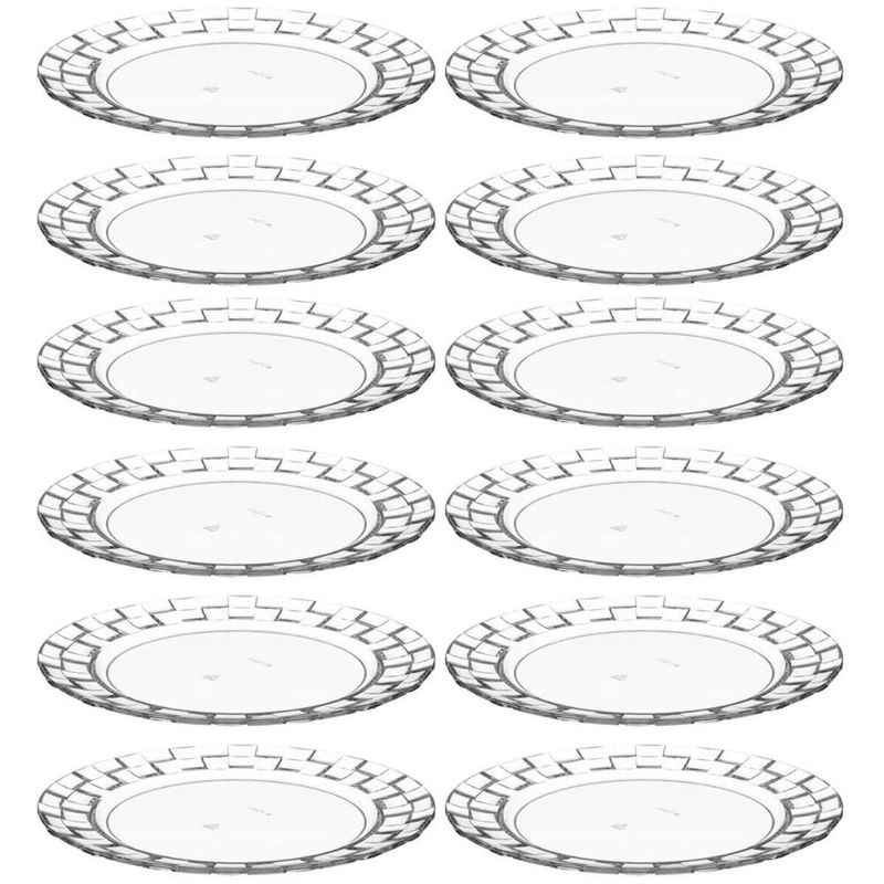 Conjunto 12 Pratos Médios Plástico Transparente para Servir Sobremesas Lanches REF: 7794462333556