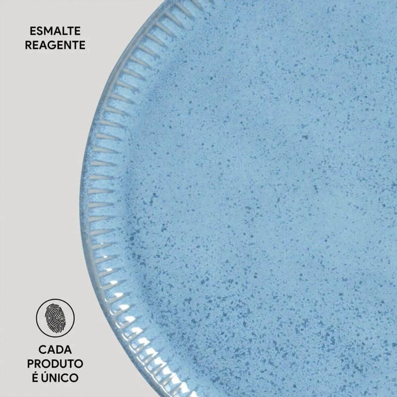 Conjunto 12 Pratos Rasos e Fundos Cerâmica Azul Breeze Porto Brasil Mesa Posta REF: 7794464094110