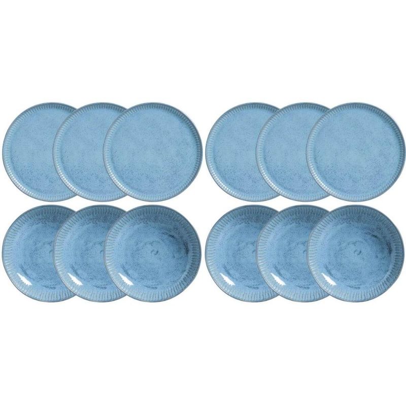 Casa e DecoraçãoUtilidades DomésticasAcessórios para ServirConjunto 12 Pratos Rasos e Fundos Cerâmica Azul Breeze Porto Brasil Mesa Posta