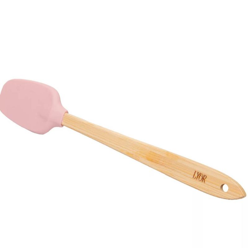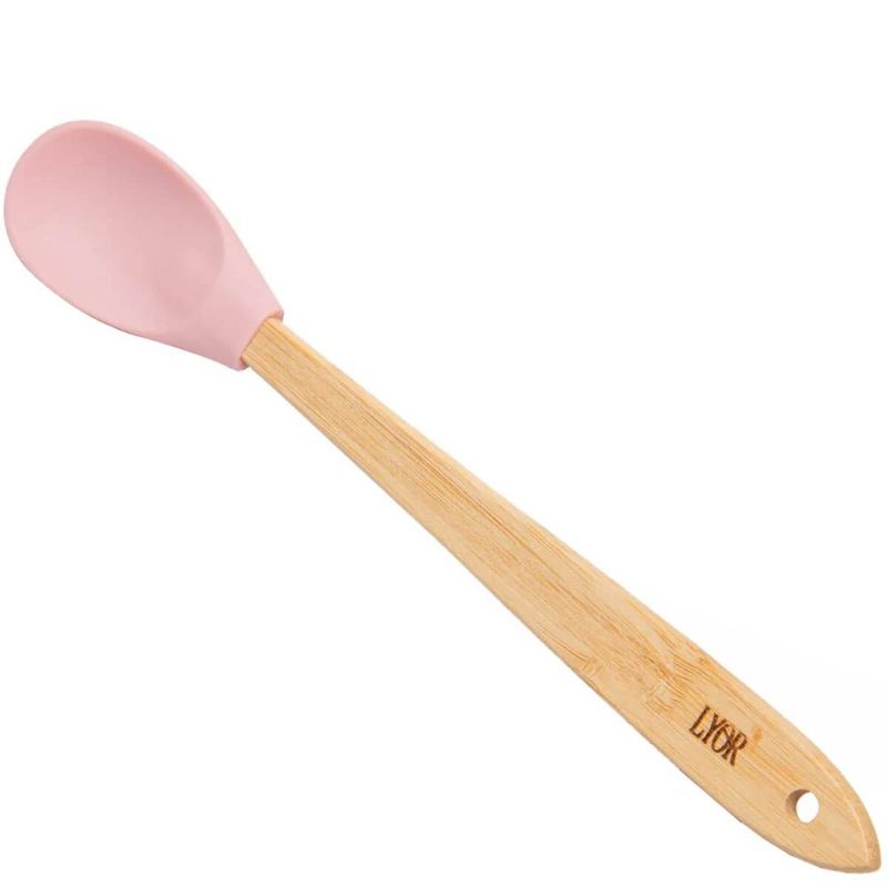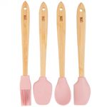 Conjunto 4 Utensílios 20cm Silicone Cabo Bambu Rosa Lyor Mini Cozinha Decoração REF: 7899768027519