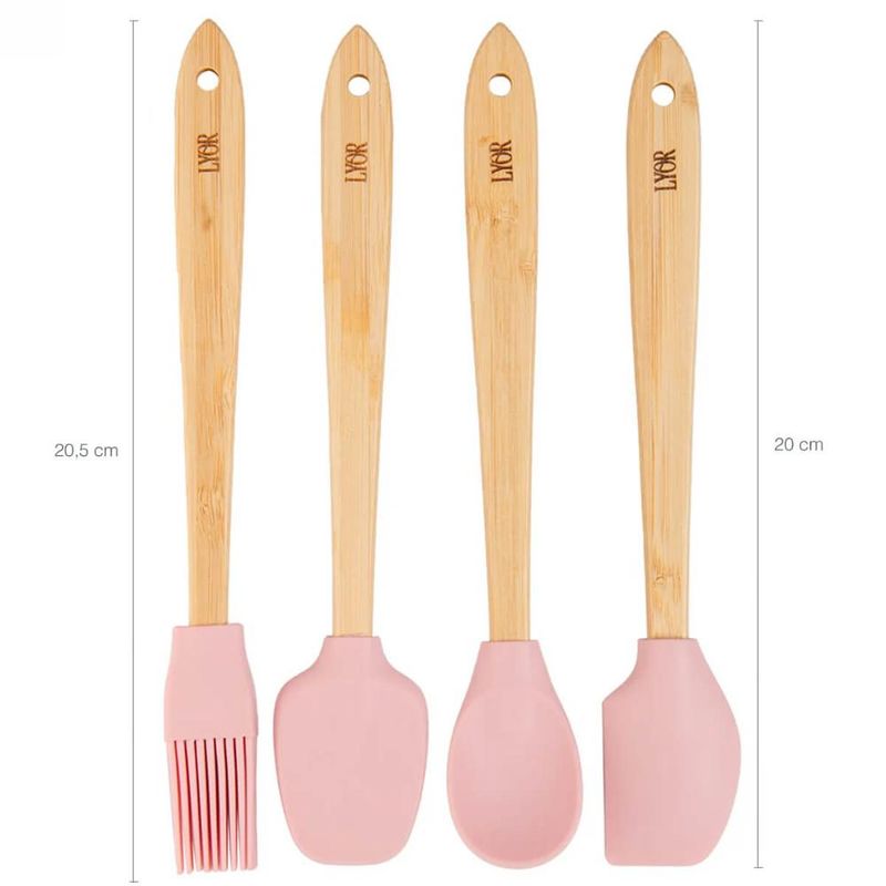 Casa e DecoraçãoUtilidades DomésticasAcessórios de CozinhaConjunto 4 Utensílios 20cm Silicone Cabo Bambu Rosa Lyor Mini Cozinha Decoração