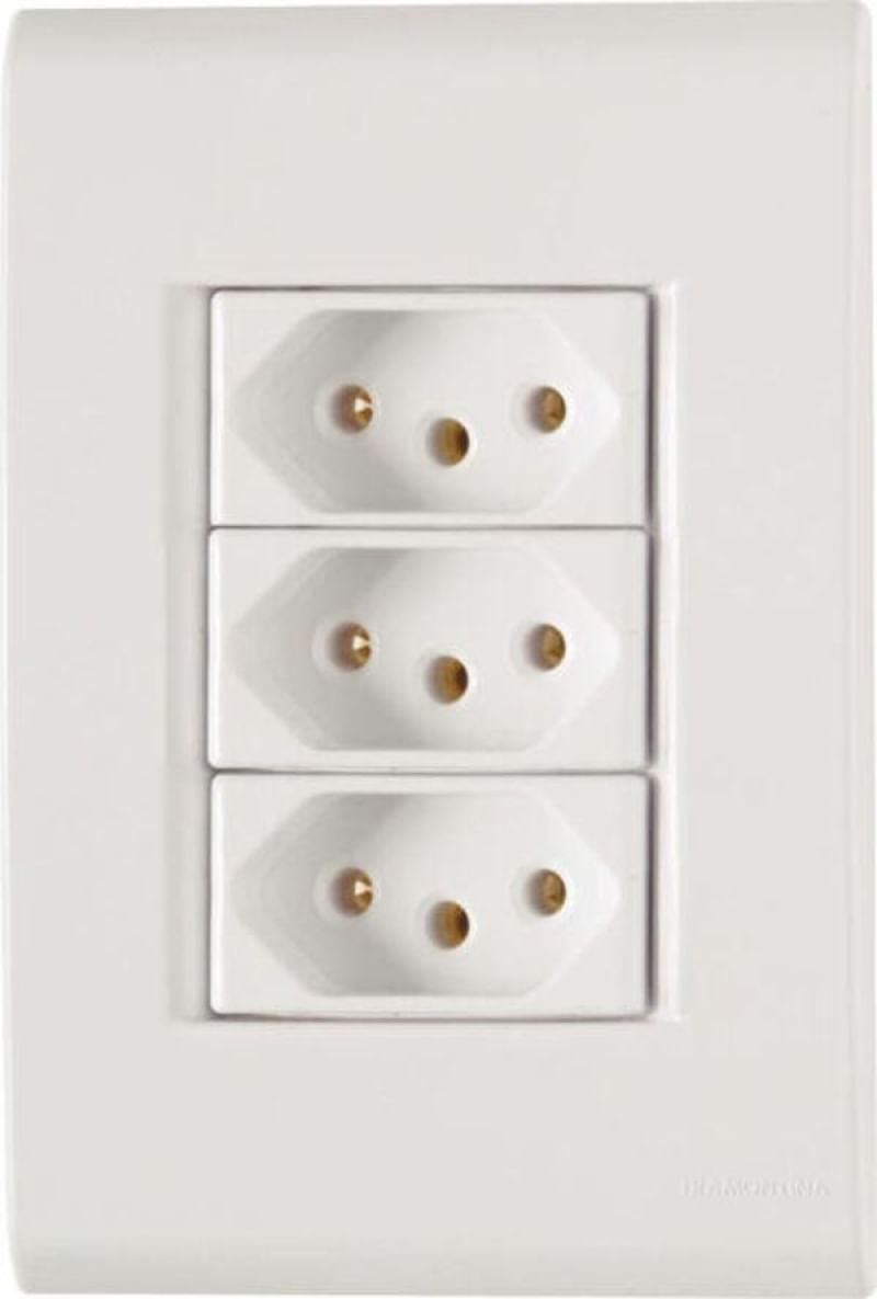 Conjunto 4x2 3 Tomadas 2P+T 10 A 250 V Tramontina Liz Branco REF: 7891435047844