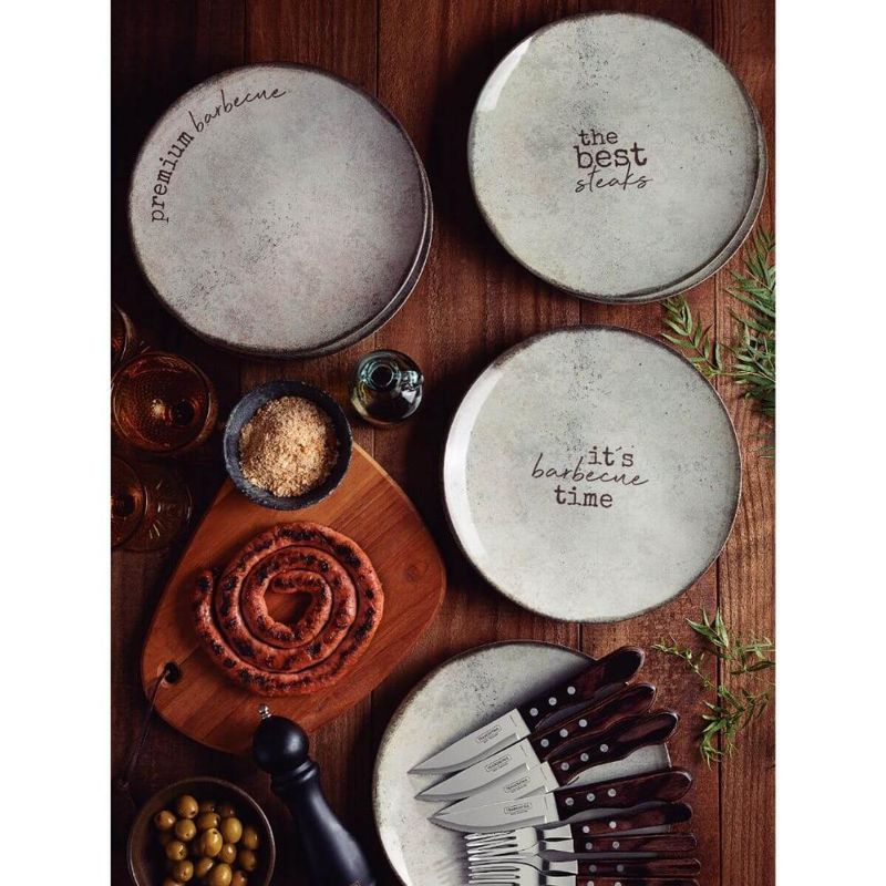Conjunto 6 Pratos Churrasco Rustic 28cm Sortido Porcelana Tramontina Mesa Posta Rasos REF: 7794464825103