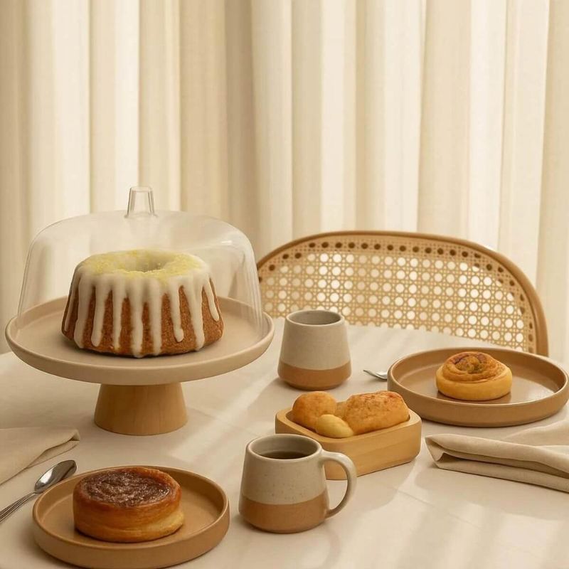 Casa e DecoraçãoUtilidades DomésticasAcessórios de CozinhaConjunto Boleira com Cúpula e Pé Tábua Migalheira Porta Pão