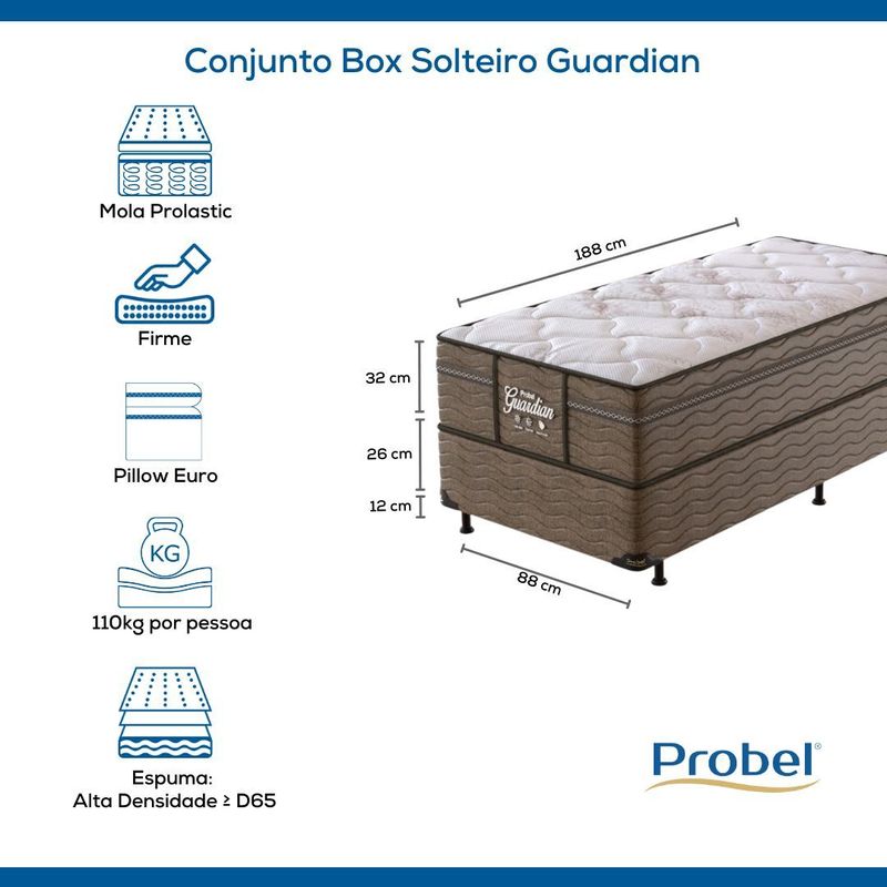 Conjunto Box Solteiro Mola Probel Guardian (88x188x58cm) REF: 581652_Sicredi