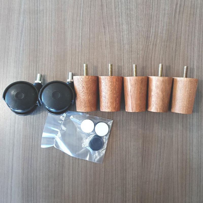 Conjunto Cama Box Casal 5 Pés Madeira Cor Mel E 2 Rodízios REF: 7798136781612