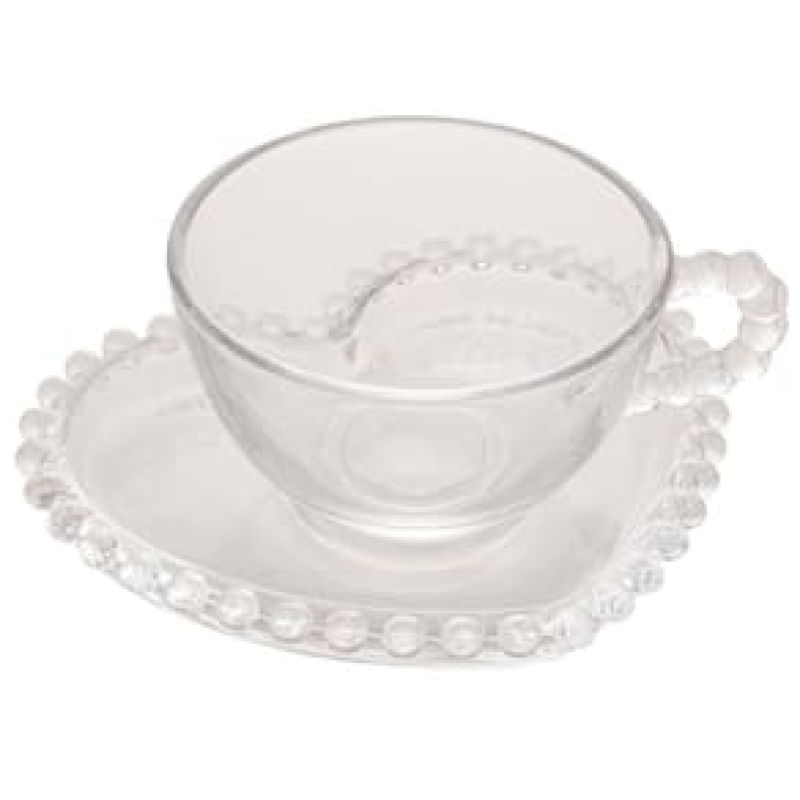 Casa e DecoraçãoUtilidades DomésticasAcessórios de CozinhaConjunto com 4 Xícaras e Pires para Chá Wolff Pearl Coração em Cristal - 180 ml
