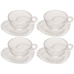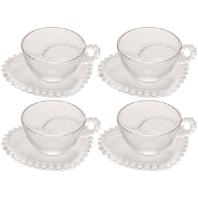 Conjunto com 4 Xícaras e Pires para Chá Wolff Pearl Coração em Cristal - 180 ml REF: 236831_Sicredi